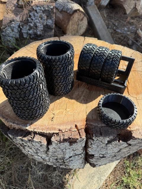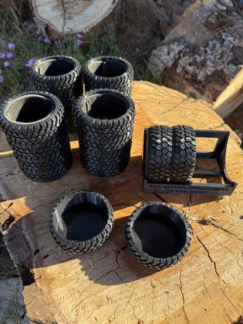 4 All Terrain Tire Koozies and Coasters W/Tire Rack